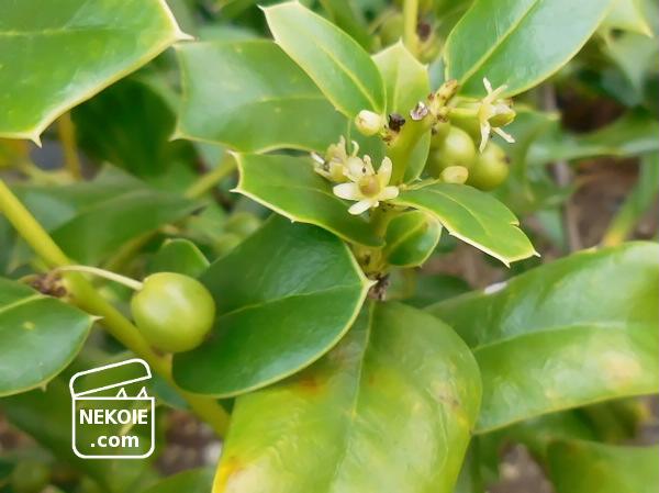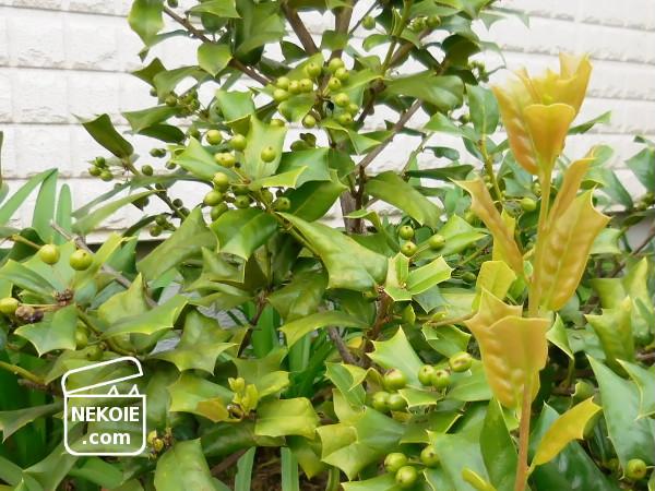 上の赤い実は今の季節ではなく、クリスマスシーズンの写真でした。チャイニーズホーリーというクリスマスリースなどに使われることも多い植物。実際のヒイラギとは別物だそうですが、忙しい年末にイベント気分を少しだけ盛り上げてくれる存在です。