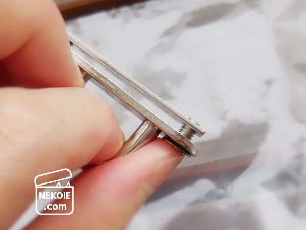 そのネジを親指で押すようにしながら、二枚のプレートがくっつかないように持つのが設置時のコツ。