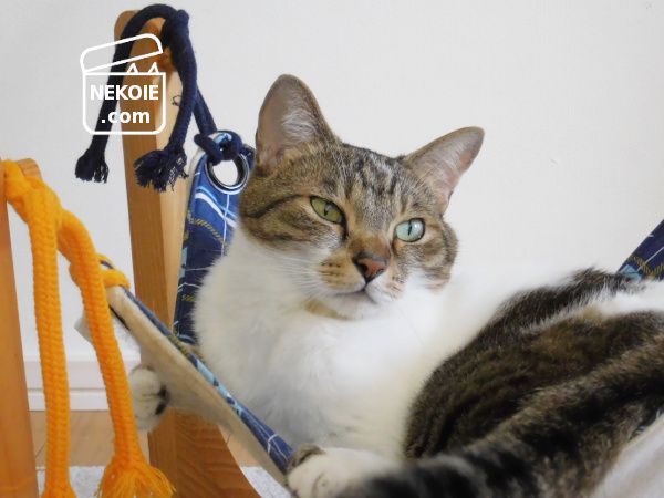本日の猫は、昨日のニャンモックの撮影中のNGシーン(?)から。