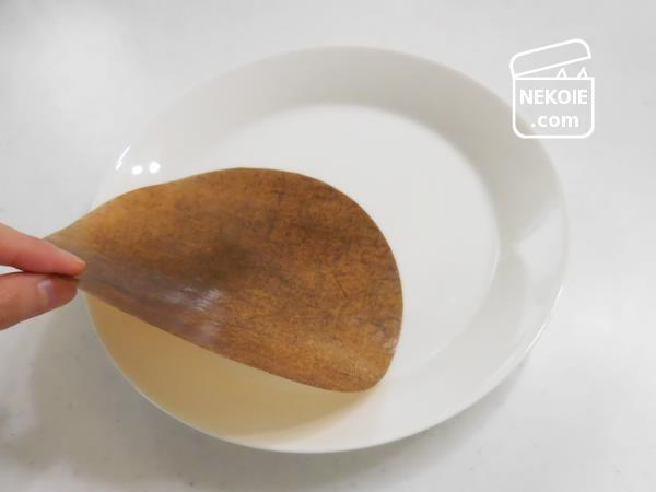 昔からオーブンの敷紙は、使い捨てないテフロンシートを使っています。ケーキ型にカットしたり、オーブン天板にそのまま敷いたり。一枚500~1000円くらいしますが、洗ってくり返し使えるものなのでコスパの悪さは感じません。これを前述のラップの代わりに皿に敷くだけ。