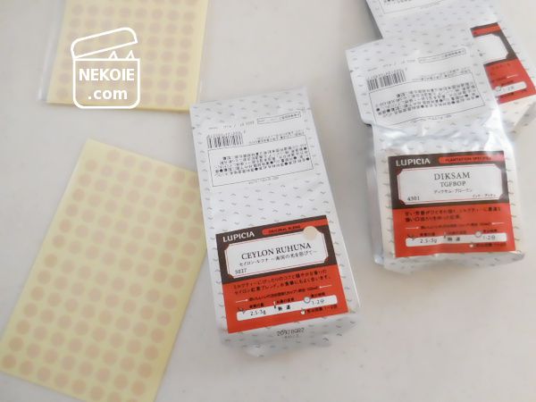 年末に届いたルピシアの福袋(すべてお茶)の中身、「ミルクティ向き」のパッケージにのみ貼りました。目印という限定的な役割だけれど、丸い小さなシールなら数百枚から千枚ほど入ったものでも100円ちょっと。これなら惜しくありません。