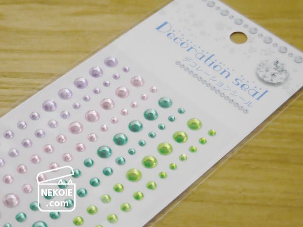 100円ショップで購入したデコレーションシール、一番小さいもので直径3mm。私はあまり「デコる」という用途で使ったことがないのですが、立体タイプで雑貨に飾りつけをするためのものだと思います。