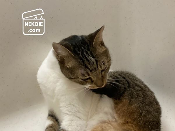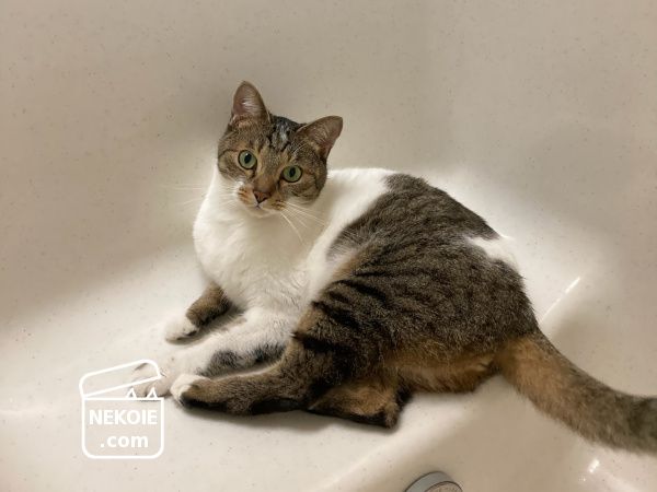 お湯を抜いた後もほかほかしているバスタブの底で毛づくろい。