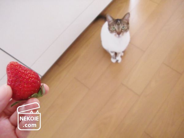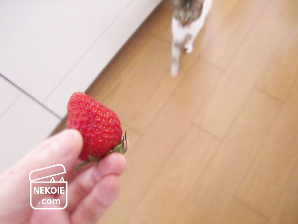 本日の猫と、見切り品のいちご。