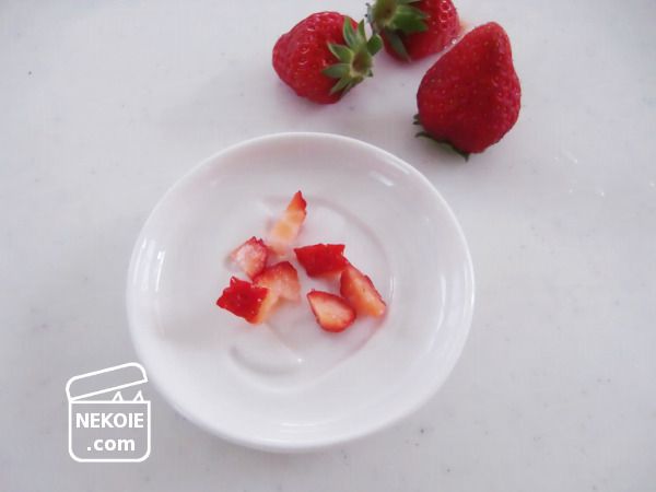小ぶりのいちごでも丸ごとあげるわけにはいかないので、カットする間は待っていてもらいました。