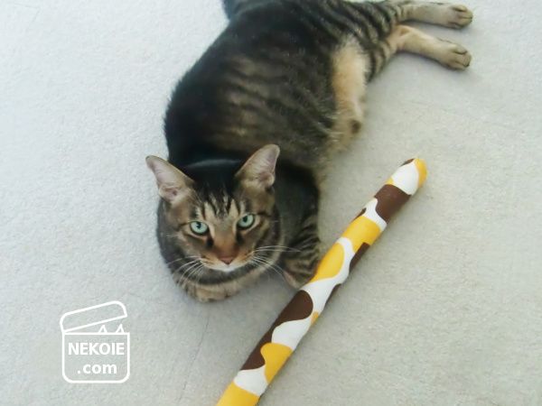 こちらはほんの数秒前までおもちゃにおおはしゃぎしていた兄猫。