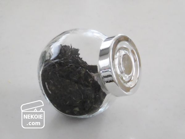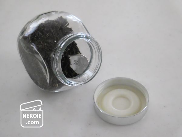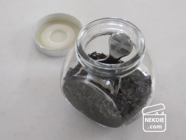 茶葉の詰め替え直後は難しいのですが、こうして中身が減ってきた頃合いから瓶の中に入れっぱなしにしておくようになりました。