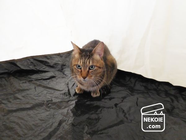 春に収納して、数ヶ月。久しぶりに見るものを使ってくれるかの不安もあったけれど、折りたたみ式のテントを広げ始めたとたんに猫が飛びこんでいきました。