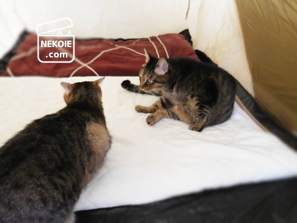 今年は小さいサイズのホットカーペット(ホットマット)を購入し、猫たちが気に入ってくれたそれの使い方もあれこれと試していたためテントの設営が遅れました。