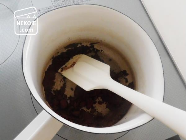 先にパウダーを煎って、それから牛乳を注いで温める。ちょっと砂糖も入れましたが、私は仕上げにチョコレートも加えてみました。