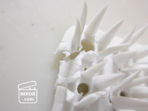 一度でこうなったわけではなく、私の管理不行き届きでくり返し被害にあっています。とはいえブラシとして使っている間も猫たちは気持ちよさそうにしているので、けして嫌いなわけではないと思う。やわらかい素材のおかげで、歯がゆいときにちょうどよかったのかな? と。