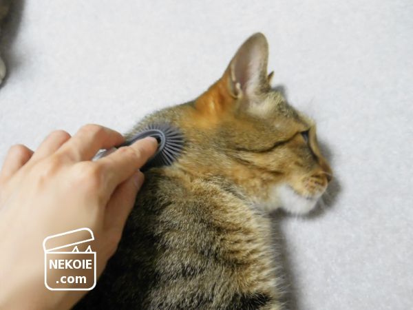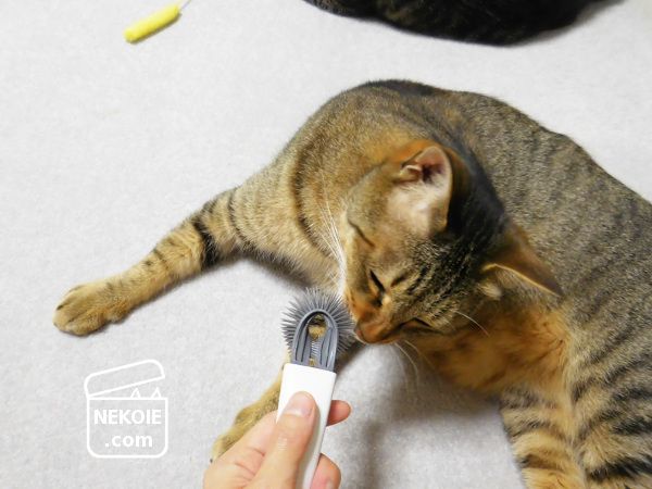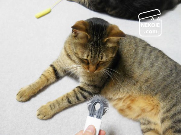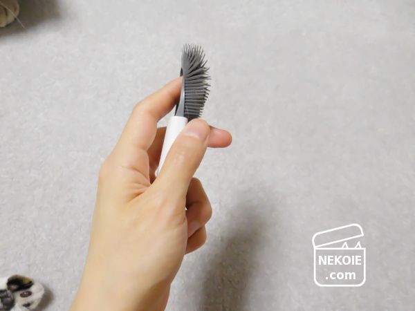 体用のブラシは別のものを持っているのでこちらは顔まわりや細い手足用に。色違いを選べたため、グレーは引き続き掃除用、ホワイトを猫用にして使い分けるつもりです。