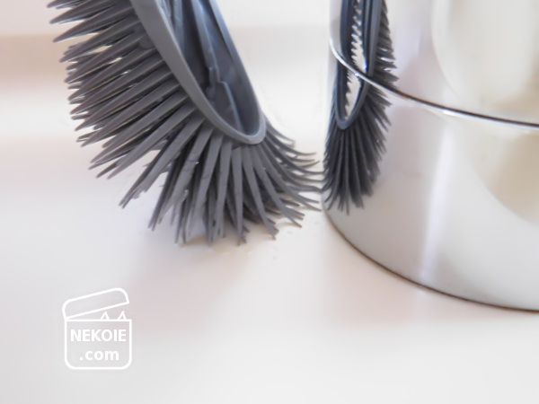 ちなみに以前手に入れたボトル洗いブラシでも代用はできそうですが、キッチンだけでなく洗面台やバスルームでも使いたかったので、兼用するには衛生面を考慮して、あとは大きさ的にも小回りが利くものをとフォースミを購入。昨年末から使い始めて、未だに新品に近い状態といえるくらい、へたれない丈夫さにも大満足しています。