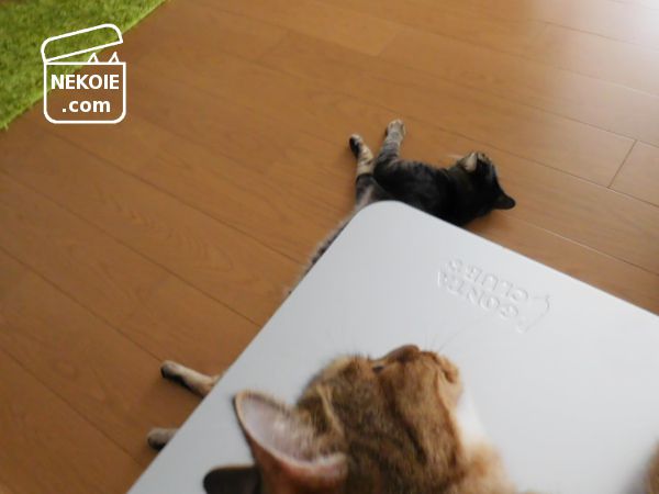 今日はラグの上より、フローリングやアルミプレートが人気。