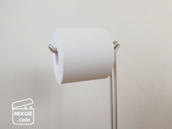 とはいえそれは見た目的に絶大な違和感をともなうことです。猫のトイレ本体を買い替えたり、配置換えをするときにも影響があると思う。壁に固定してしまったペーパーホルダー優先で考えなくてはいけなくなります。