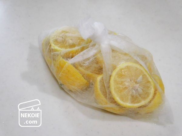 冬至の一番の楽しみが、ゆず湯。実は先日ぽん酢を仕込んだときに、使った姫ゆずのしぼりかすを排水口ネットにまとめ、それをお風呂に浮かべて一足先にゆず湯を堪能したんです。それがすごくよくて。
