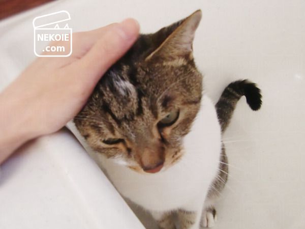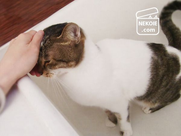 なでなでのセルフサービスが板についている弟猫。