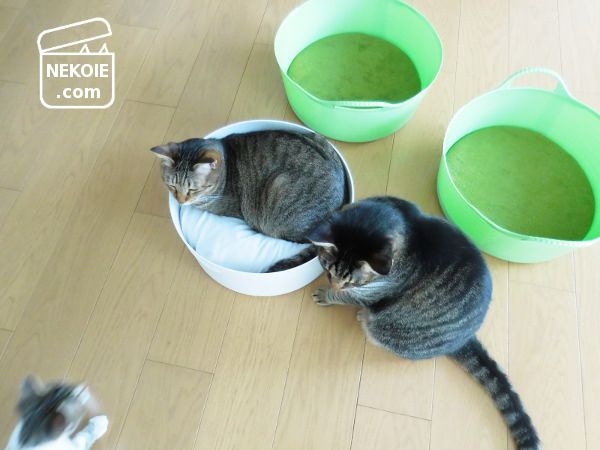 模索するベッドで、兄猫たちがまったりし始めた頃…を、見計らったかのように、ととと。