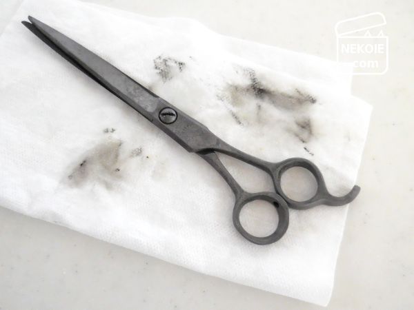 紙に包んで自宅に持ち帰ったあとも、そのはさみからは粉のような赤さびがポロポロ。
