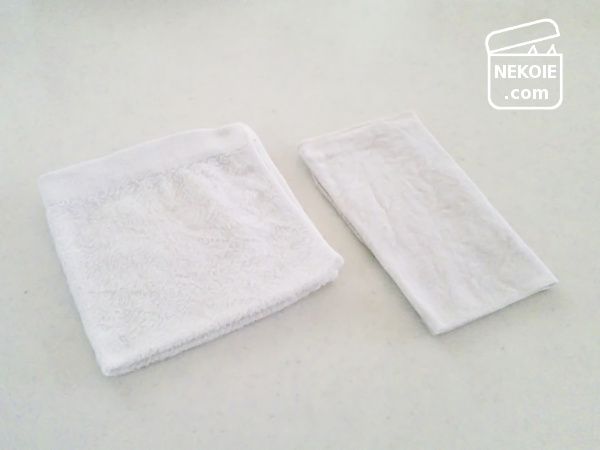 布巾は無印良品のものですが、開くとほぼ同じサイズで厚み違い。