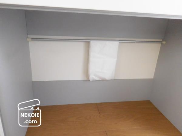 突っ張り棒は(おそらく)100円ショップで買ったものですが、最近他の収納見直しを進めた結果、不要になったもの。新たに買うことなく完了です。
