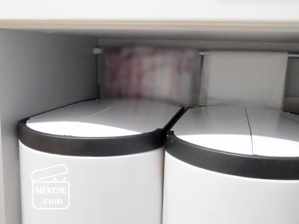 ゴミ箱を引き出したり、押し込んだりしながら高さを調節して…