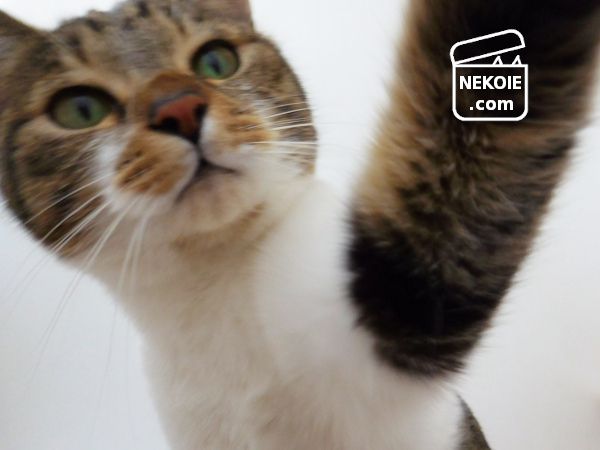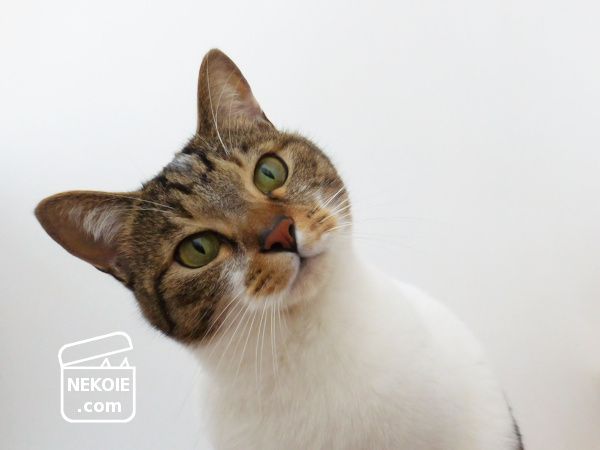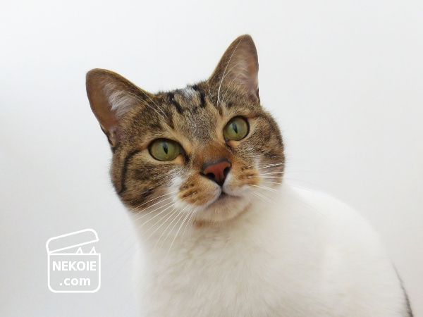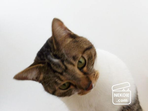 全然カメラ目線をいただけない。視線は猫草にくぎづけ。