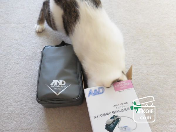 本日の猫は、血圧計を開封した日の猫。