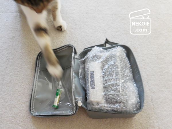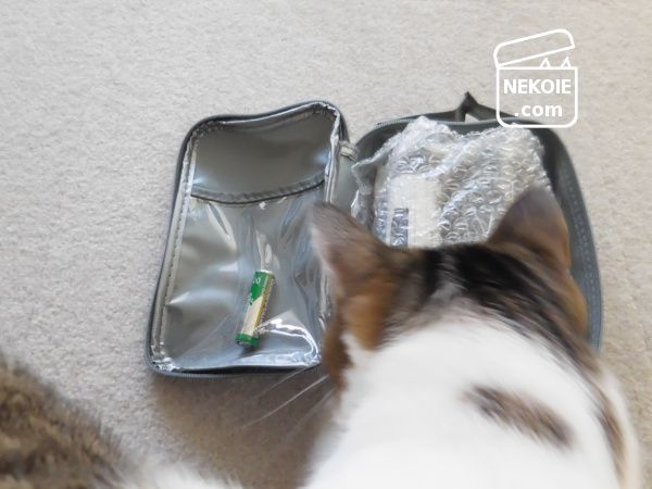 付属の電池は本体ケースの内ポケットにそのまま入っていたので、私も取り出した電池はここに戻すようにしています(なんとなく毎回取り出しています)。