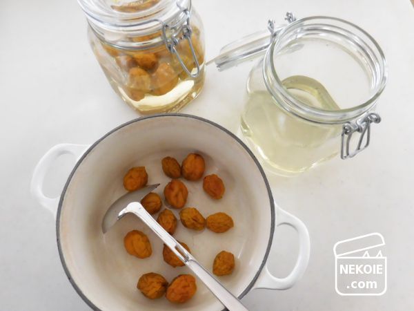 私自身はあまりジャムを食べないので完成品は知人のもとへお嫁に出しましたが、昨年はシロップ漬けに使った梅を捨ててしまったので、今年は無駄なく活用できたことがうれしかったです。