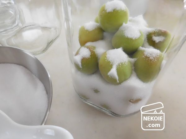 梅干しのときは梅と塩でしたが、シロップは梅と砂糖。その二つが層になるよう重ねていくだけ。