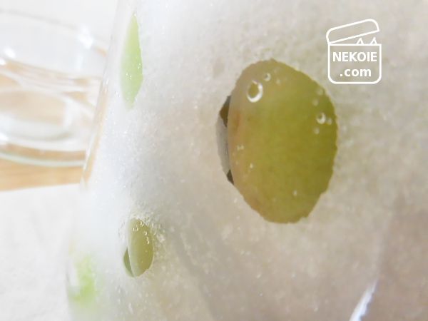 ガラス越しに確認できる梅が結露しているように見えるのですが、砂糖が溶けた結晶のような印象でもありました。