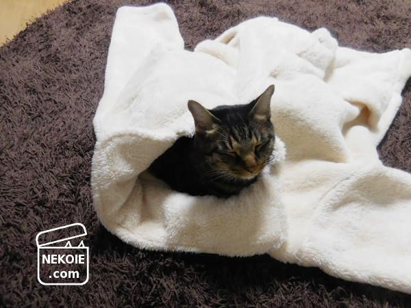 本日の猫と、着る毛布。