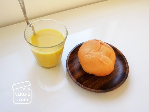 パンに添えるインスタントスープにもグラス。