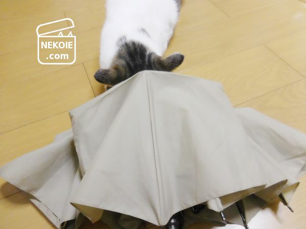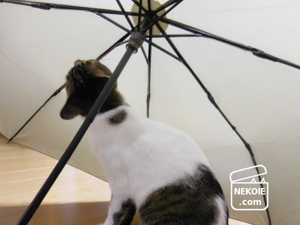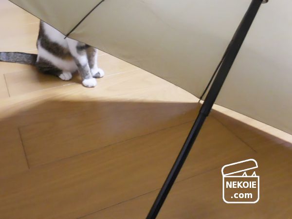 私が傘のお手入れや撮影をしている間、ずっと周囲をうろうろしていた弟猫。
