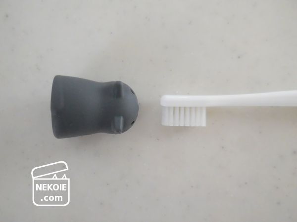 この猫は、二つセットで販売されています。当初は家族とシェアすることを考えていましたが、私は歯医者さんへメインの歯ブラシとは別にワンタフトブラシなども持っていくので、キャップとしては二つセットであることが役立っています。