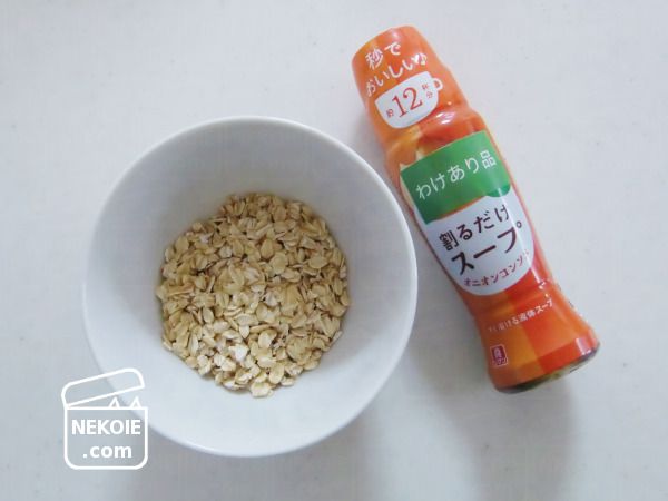 文字どおりお湯で割るだけのスープでオートミールを煮る(レンチンする)ことであっという間に完成します。