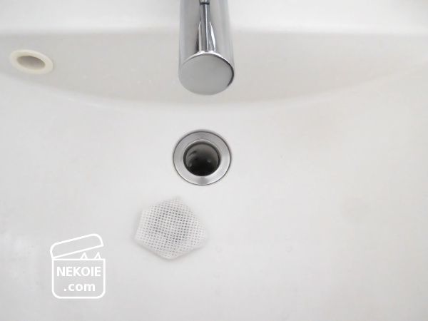 髪の毛や猫の毛はしっかりキャッチできているし、調子はよさそう。石けんかすについてははっきりしないものの、試しに何日か放置していたときは後にべたつき(石けんかす特有のものと似ている感触)があったので、金属のかごをそのまま置いているよりは流れていくものを防いでくれているのではないかと期待しています。