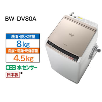 新洗濯機は、日立のビートウォッシュBW-DV80Aという機種。
