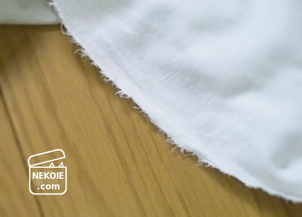 裂け目が毛羽ついても、これ以上ポロポロほつれることはあまりありません。今回の生地は縦のラインは裂きやすかったのですが、横はヨレてしまったのでハサミで切っています。