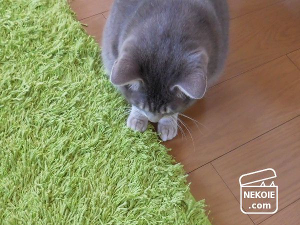 リビングに敷いているラグは、もう少し爪とぎとして活用してから検討。