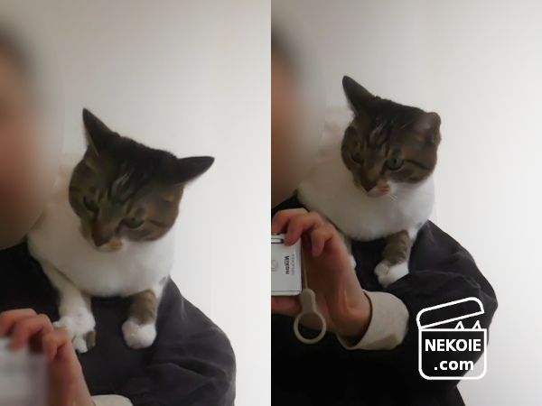 そしていちごを持っている私の背中に飛んできた弟猫。この状態、最近は不安定さを感じさせなくなりました。