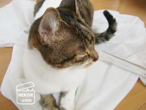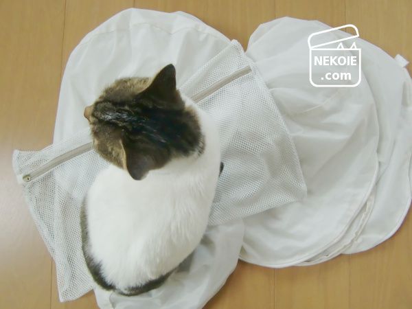 弟猫がもぐるには……もう少し大きめのネットが良さそうです。