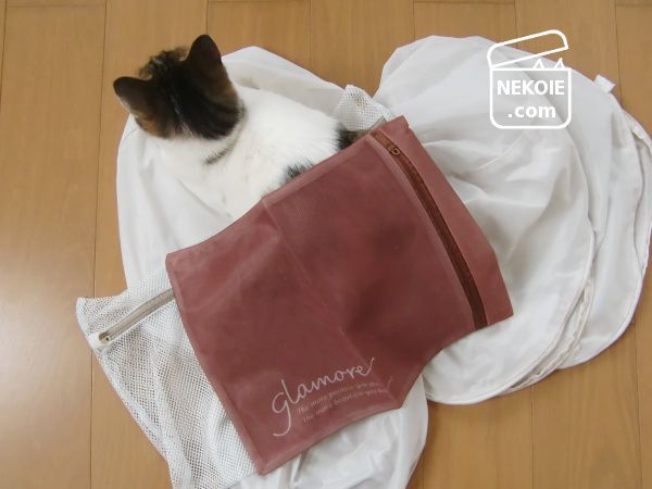 それから目の細かい洗濯ネットには内側に綿埃などがたまることがあります。衣類の繊維だったり、猫の毛だったり。日々の使用中に気づけばその都度除去していますが、定期的にひっくり返してお手入れすることに。