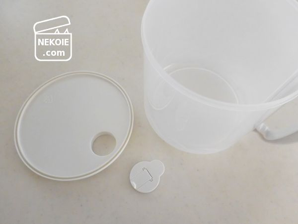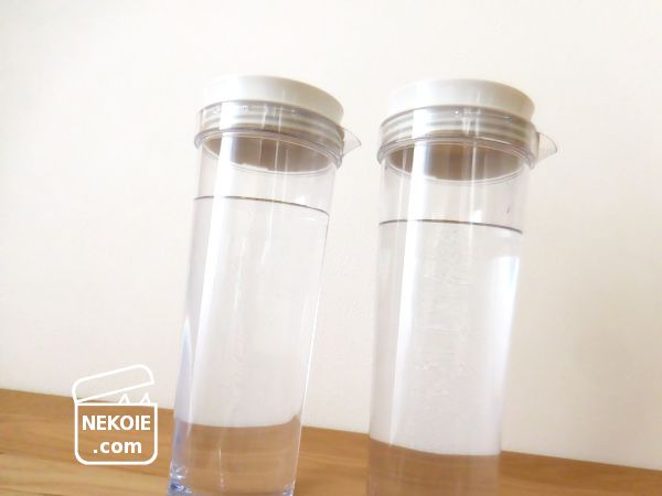 ただ私は蒸留水を冷蔵庫に入れる際は1リットルほどの冷茶ポットなどに移し替えるので、この小さな蓋のほうをほとんど使っていません。