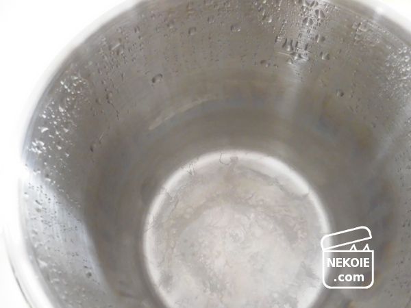 ただ使用後しばらくたって完全に冷めたタイミングでも、内側には水滴がびっしりついた状態です。しかも除去したカルキなどはここに残っているので、さわってみると内壁もざらざら。
