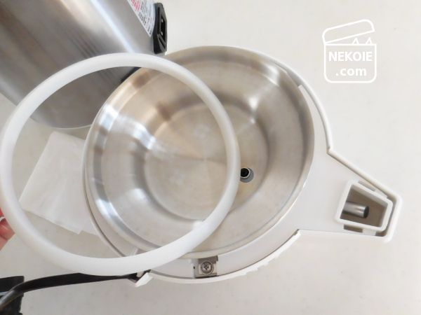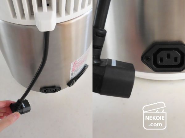 こちらのコードについてはいつも冷めてから抜いています。それと前後して、蓋側についているノズルの取り外し。