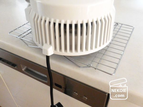 この乾燥作業(放置)は邪魔にならない場所に移してから行いますが、蓋から取り外すことのできないコードができるだけ伸びた状態を保てるようにと気をつけています。