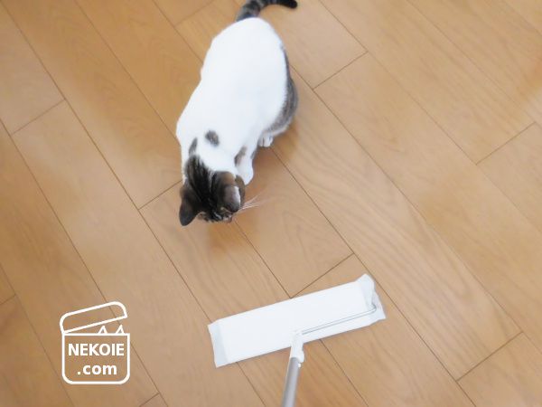 一部の猫は掃除機の音が大嫌いで私が手に持つだけで逃げて行ってしまうけれど、フロアワイパーはむしろ大好き。当初はそっと距離をとるかのように遠巻きに見ている子もいましたが、今は大きな猫じゃらし感覚で追いかけてきたり、周辺で優雅にお昼寝を続けたり。少なくとも嫌がられることがほとんどありません。