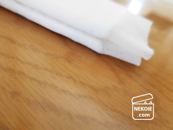 - シートの両サイドを折りこみ、ヘッドを閉じる(二つ折りにする)。